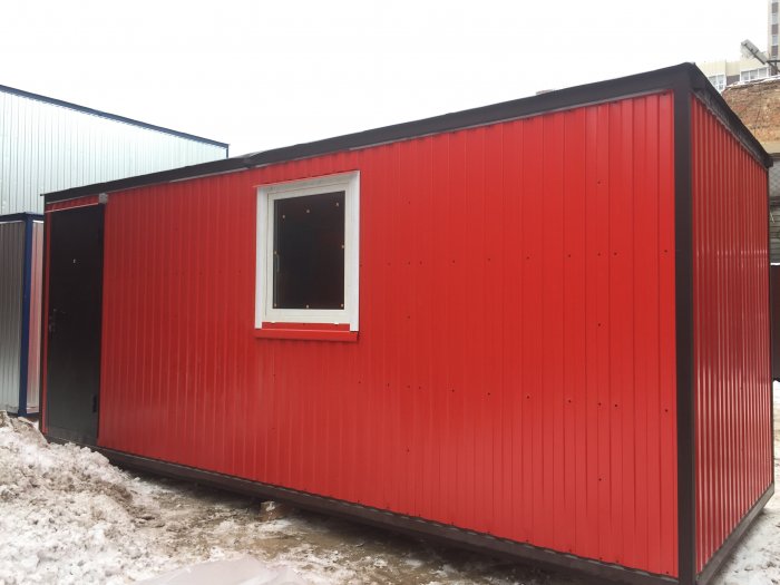 Дачный дом из блок-контейнера, красный профлист